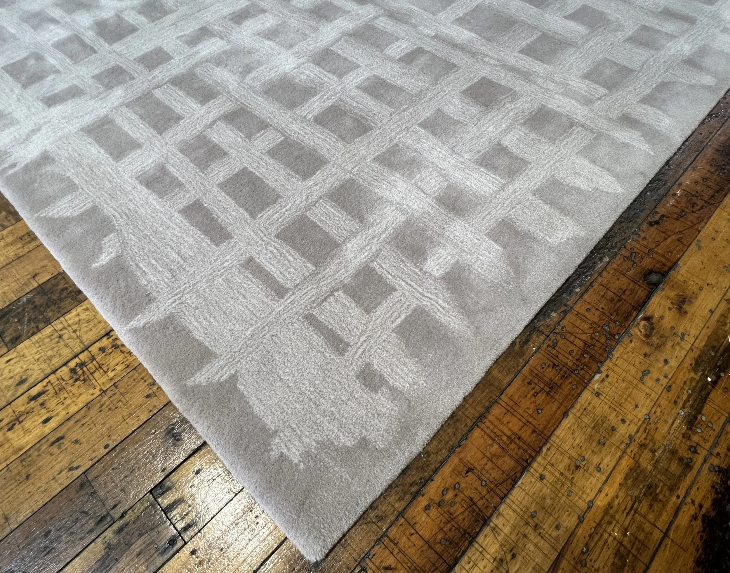 This rug is a testament to the meticulous craftsmanship of our workshop, where subtle colour blends create a delicate interplay, instigating a sense of tension within the lines. The unders and overs in the grid impart a captivating depth. Even at scale, this textile remains faithful to the exquisite freehand gesture reminiscent of Reynold's chalk lines.