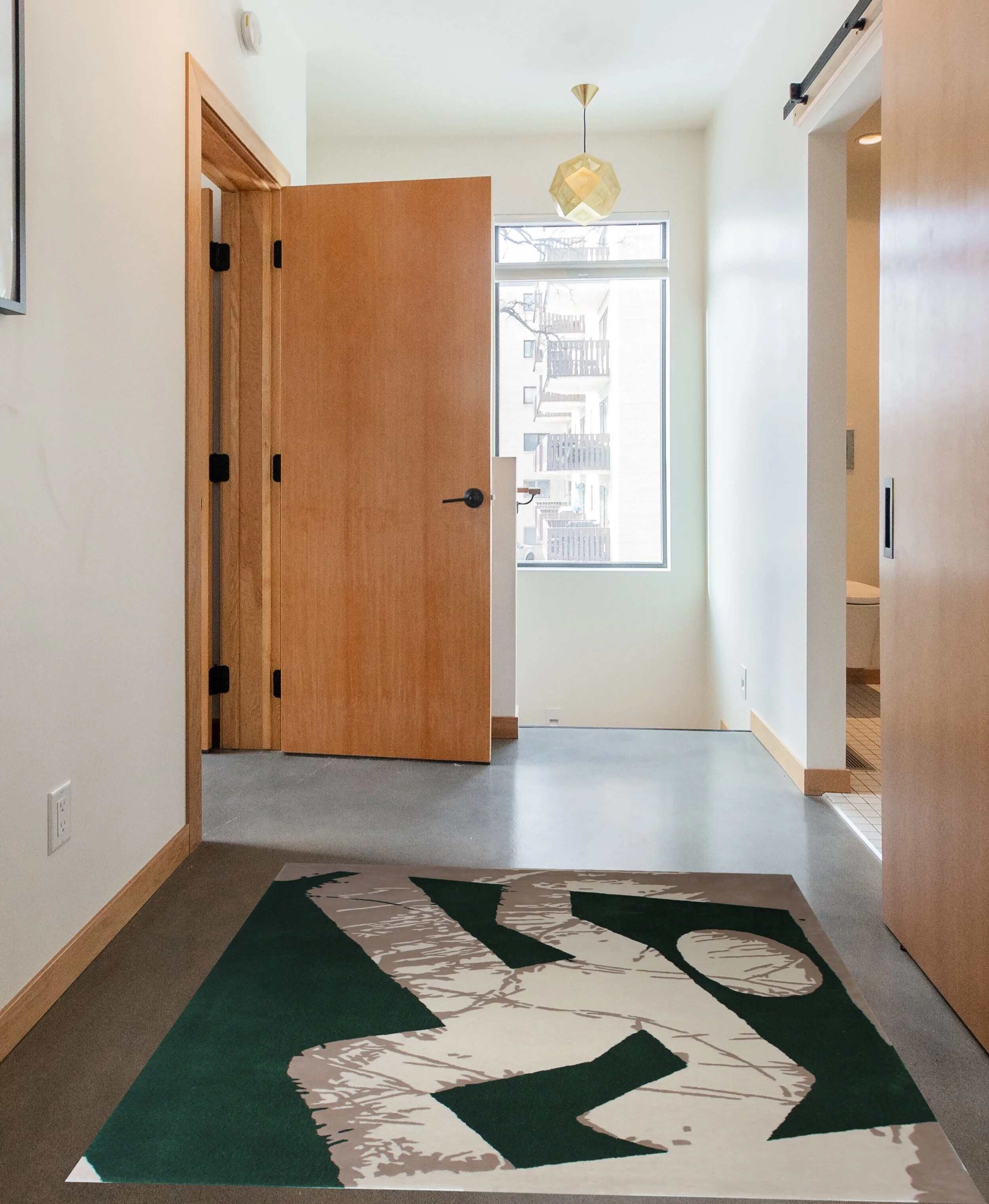 ‘Tramline’, ‘Coca Exit’ and ‘Lumiere Exit’ make up Signage Series, a new collection of rugs at Dilana. Dilana has had the pleasure of working with Trusttum in the past on rugs such as ‘Red Monster Face’, ‘Williams Roller’ and ‘Fold Up Doll’. Signage Series continues this relationship, presenting three new Trusttum rugs made in collaboration between Sudi Dargipour and the artist himself.